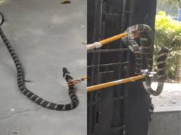 नई दिल्ली । राष्ट्रीय राजधानी दिल्ली के बिहार भवन में उस समय हड़कंप मच गया, जब वहां 10 फीट लंबा कोबरा दिखाई दिया सांप के दिखते ही आनन-फानन में बिल्डिंग को खाली कराया गया और फायर ब्रिगेड को सूचना दी गई इसके बाद घंटों तक चले रेस्क्यू ऑपरेशन के बाद किंग कोबरा को सुरक्षित पकड़ा गया फायर ब्रिगेड के एक अधिकारी ने बताया दिल्ली के चाणक्यपुरी इलाके में स्थित बिहार भवन में एक किंग कोबरा दिखाई पड़ा, जिसे हमारी टीम ने सुरक्षित पकड़ लिया है उन्होंने कहा कि हमें 50 मिनट पर बिहार भवन में सांप के होने की सूचना मिली थी इसके बाद सांप को सुरक्षित निकालने के लिए मौके पर एक टीम भेजी गई राजधानी दिल्ली स्थित बिहार भवन के पास निकाला किंग कोबरा सांप, दमकल की टीम ने किया कड़ी मशक्कत के बाद रेस्क्यू। उन्होंने कहा कि मौके पर पहुंची टीम को सांप ढूंढ़ने में खासी दिक्कतों का सामना करना पड़ा दहशत भरे माहौल में सांप एक जगह से दूसरी जगह पर भाग रहा था इस वजह से उसे पकड़ने में खासी समस्या हो रही थी काफी देर बाद टीम को सांप एक पेड़ से लटकता हुआ दिखाई दिया इसके बाद टीम के सदस्यों ने स्पेशल स्टिक की मदद से सांप को पहले पेड़ से नीचे उतारा फिर सांप को सुरक्षित बचा लिया गया और वन विभाग को सौंप दिया वहीं वन अधिकारियों ने बताया कि दिल्ली में किंग कोबरा का यह पहला मामला है बताया जा रहा है कि इस दौरान कर्मचारी समेत सभी लोगों को ये डर सता रहा था कि कहीं कोबरा उनकी गिरफ्त से निकलकर भाग ना जाए या फिर वहां मौजूद लोगों में से किसी के ऊपर हमला ना कर दे लेकिन, फायर ब्रिगेड की टीम ने अपनी सूझबूझ से कोबरा को पकड़ लिया वहीं सांप के थैले में जाते ही वहां मौजूद लोगों ने राहत की सांस ली फायर ब्रिगेड की टीम ने बताया कि किसी को कोई नुकसान नहीं हुआ है