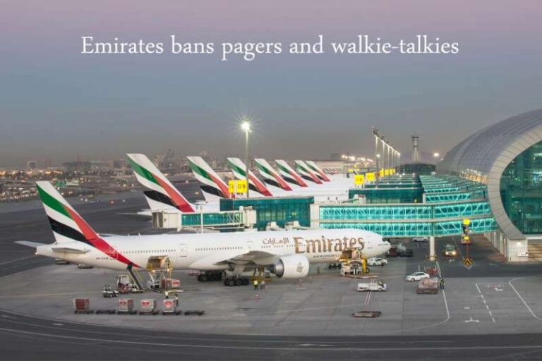 दुबई। दुबई से आने-जाने वाली उड़ानों में सवार सभी यात्रियों को चेक किए गए या केबिन बैगेज में पेजर और वॉकी-टॉकी ले जाने की अनुमति नहीं है, जैसा कि एमिरेट्स ने शुक्रवार शाम को जारी अपने हालिया यात्रा परामर्श में कहा है। एयरलाइन ने इस बात पर जोर दिया कि यात्रियों के हैंड बैगेज या चेक किए गए बैग में पाए जाने वाले ऐसे किसी भी उपकरण को दुबई पुलिस द्वारा जब्त कर लिया जाएगा।