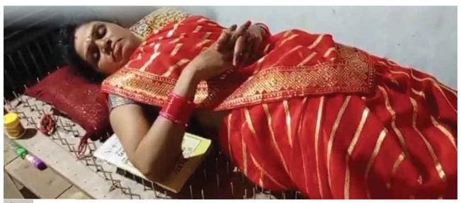 कोरबा । नवरात्र में देवी मां की आस्था में लोग पूजा अनुष्ठान विधान पूर्वक तो करते ही हैं, कुछ लोग एकदम अलग तरीका अपनाकर लोगों को आश्चर्य में भी डाल देते हैं। ऐसी ही आस्था के साथ हरदी बाजार के ग्राम नेवसा निवासी छोटेलाल चौहान की पत्नी ईश्वरी चौहान देवी मां की सेवा में जुटी हैं। उन्होंने नवरात्र में नुकीले कील से बनी खाट पर लेटकर देवी मां की साधना कर रही है।