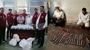 नई दिल्ली। दिल्ली पुलिस की क्राइम ब्रांच ने रविवार को उत्तर प्रदेश के मेरठ इलाके में एक अवैध हथियारों की फैक्ट्री का भंडाफोड़ किया। इस मामले में क्राइम ब्रांच ने दो लोगों को गिरफ्तार किया। पुलिस ने मौके से हथियार बनाने वाले रॉ मटेरियल और करीब एक दर्जन से ज्यादा देसी कट्टे बरामद किए हैं। पुलिस अब पता लगा रही है कि ये हथियार कहां और किसके पास सप्लाई होने थे। उधर, द्वारका सेक्टर 23 थाना पुलिस ने अवैध शराब के तस्कर को गिरफ्तार कर उसके पास से 10 कार्टन अवैध शराब बरामद की है। आरोपित की पहचान महिपालपुर के आमिर के रूप में हुई है।पुलिस ने अवैध शराब की तस्करी में इस्तेमाल की गई वैगनआर कार भी जब्त की है। आरोपित यह शराब हरियाणा से लेकर आया था।पुलिस मामले में आगे की कार्रवाई कर रही है। पुलिस अधिकारी ने बताया कि द्वारका सेक्टर 23 थाने के पुलिस कर्मी द्वारका सेक्टर 21 मेट्रो स्टेशन के पास पिकेट लगाकर वाहनों की जांच कर रहे थे। इस दौरान उन्होंने कार को रोककर जब तलाशी ली तो कार से दस कार्टन शराब बरामद हुई। पुलिस ने कार व शराब जब्त कर कार चालक आमिर को गिरफ्तार कर लिया। पूछताछ के दौरान आरोपित ने बताया कि उसने दौलताबाद फ्लाईओवर से लेकर महिपालपुर लेबर चौक के पास तक अवैध शराब की सप्लाई की थी।पुलिस आरोपित के साथियों का पता लगाने की कोशिश कर रही है। बाहरी, द्वारका व पश्चिमी जिले में इस बार सितंबर की शुरुआत चोरी, लूटपाट, गैंगस्टर के नाम पर रंगदारी मांगने, फायरिंग करने से हुई और महीने का अंत भाजपा नेता व गुरुद्वारा प्रबंधक कमेटी के सदस्य को गैंगस्टर के नाम से धमकी देने से हुआ।