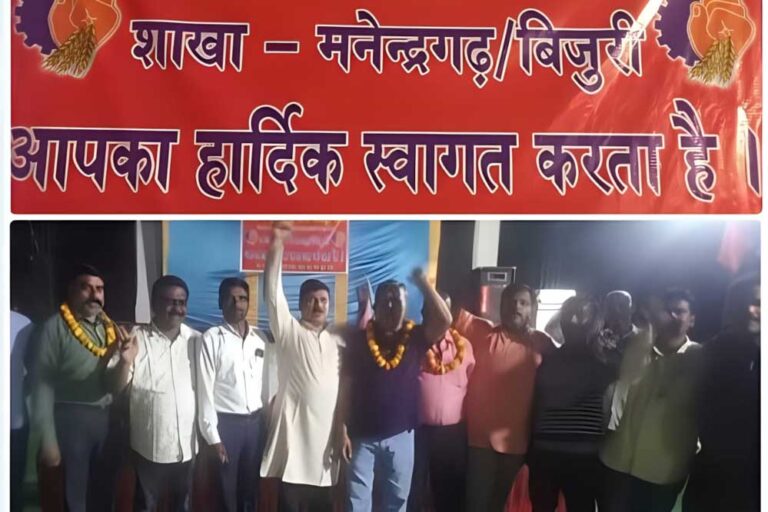 जिसमें नई कार्यकारिणी दक्षिण पूर्व मध्य रेलवे मजदूर संघ शाखा मनेन्द्रगढ़/बिजुरी का बनाया गया जिसमें अध्यक्ष आर के गौतम कार्यकारी अध्यक्ष एस एन सिंह उपाध्यक्ष इंद्र कुमार जायसवाल व अर्पणा व सचिव राजेंद्र सोनकर, सह सचिव मधु सिंह (मीडिया प्रभारी), सह सचिव कपिल पाठक संध्या दास,अवधेश परिहार कोषाध्यक्ष उपेंद्र महतो कार्यकारिणी सदस्य में रवि संतोष प्रसाद,ऋषि, बृज नारायण दास, सन्यासी राव, लीलावती, सुनीता कुमारी, राम कुमारी को बनाया गया।
