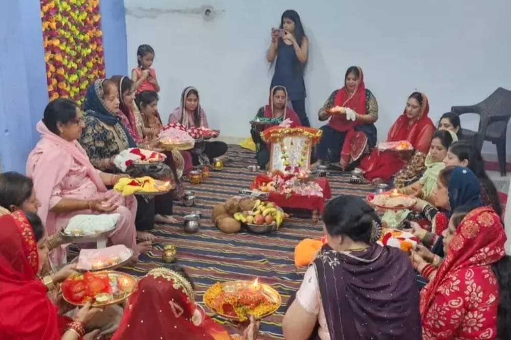 विगत वर्षों की भांति इस वर्ष भी लगातार 24 वे वर्ष समाजसेवी संस्था वी क्लब की एरिया ऑफिसर पम्मी अरोड़ा के वार्ड नंबर 9 विनय होटल के पीछे स्थित निवास स्थान पर करवा चौथ के महापर्व अत्यंत हर्षो उल्लास के साथ मनाया इस धार्मिक अवसर पर सामूहिक पूजा अर्चना की गई जिस दौरान समाज की सभी वर्गों की महिलाएं उपस्थित रही ज्ञात रहे की करवा चौथ के दिन सुहागन महिलाओं द्वारा पति की मंगल कामना एवं परिवार की सुख समृद्धि हेतु कार्तिक मास की कृष्ण पक्ष की चतुर्थी तिथि को निर्जला व्रत रखकर किया जाता है।
