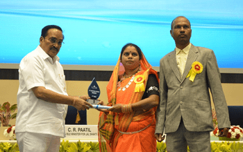 नई दिल्ली के विज्ञान भवन में आयोजित समारोह में केंद्रीय जलमंत्री सीआर पाटिल द्वारा ग्राम पंचायत मासुलपानी की सरपंच श्रीमती रमिया नेताम को पुरस्कृत किया।