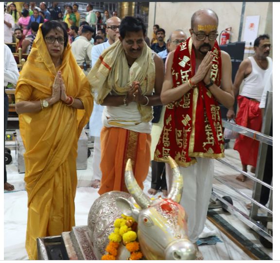 उज्जैन । छत्तीसगढ़ के राज्यपाल रमेन डेका ने अपने उज्जैन प्रवास के दौरान अपनी धर्मपत्नी रानी डेका के साथ श्री महाकालेश्वर भगवान के दर्शन किए। इस दौरान उन्होंने बाबा महाकाल की भक्ति में लीन होकर चांदी द्वार से दर्शन किए। नंदी हॉल में नंदी जी के कानों में अपनी मनोकामना व्यक्त की। श्री महाकालेश्वर मंदिर प्रबंध समिति के प्रशासक गणेश कुमार धाकड़ ने राज्यपाल डेका को स्मृति चिन्ह, दुपट्टा और प्रसाद भेंट कर उनका सम्मान किया। इस अवसर पर संजय पुजारी, राम पुजारी, आशीष पुजारी और सहायक प्रशासक मूलचंद जूनवाल भी उपस्थित थे। छत्तीसगढ़ के 10वें राज्यपाल रमेन डेका का जन्म 1 मार्च 1954 को असम के सुआलकुची, कामरूप (असम) में हुआ। उनके पिता स्वर्गीय सुरेंद्र नाथ डेका और माता स्वर्गीय चंपाबती डेका थीं। उनके परिवार में उनकी धर्मपत्नी रानी डेका काकोटी और दो बच्चे हैं। उन्होंने गुवाहाटी विश्वविद्यालय के प्राग्ज्योतिष कॉलेज से दर्शनशास्त्र और अर्थशास्त्र में बीए की डिग्री प्राप्त की।