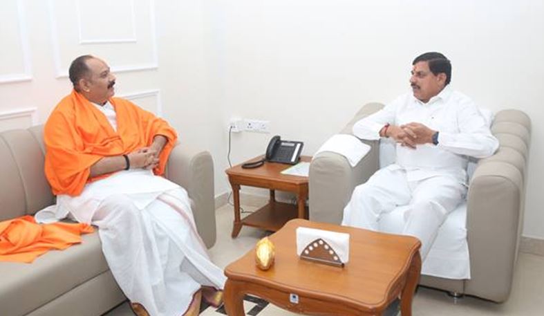 मुख्यमंत्री डॉ. मोहन यादव से प्रसिद्ध कथावाचक और आध्यात्मिक गुरु प्रदीप मिश्रा ने मुख्यमंत्री निवास पर भेंट की। मुख्यमंत्री डॉ. यादव ने शॉल, श्रीफल और पुष्प-गुच्छ से पं. मिश्रा का स्वागत किया और आशीर्वाद लिया। पंडित मिश्रा ने भी शॉल पहनाकर मुख्यमंत्री डॉ. यादव का अभिनंदन किया।