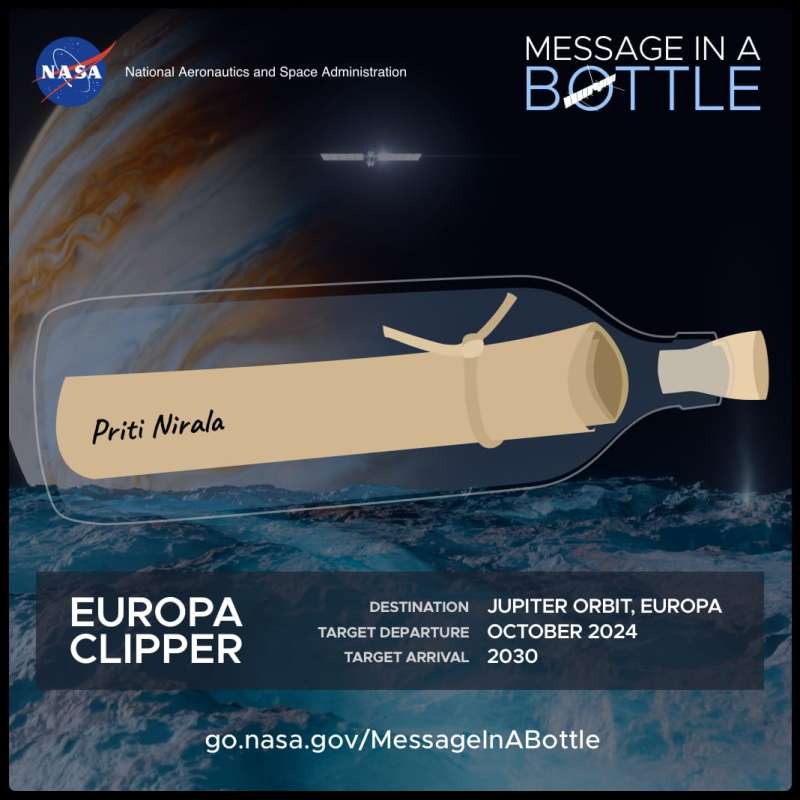 बृहस्पति के 95 ज्ञात उपग्रहों में से एक यूरोपा के लिए जब इस अंतरिक्ष यान ने उड़ान भरी तो अपने साथ सिलिकॉन चिप में 26 लाख लोगों के सपनों को भी अपने साथ अंतरिक्ष में लेकर उड़ा। जहां यूरोपा क्लीपर में रखे सिलिकॉन चिप में 26 लाख लोगों के नामों के साथ जशपुर जिले के भी 30 बच्चों, शिक्षकों एवं जशपुर के निवर्तमान जिलाधीश डॉ. रवि मित्तल का नाम भी अपने साथ लेकर ऊँचाइयों को छूता गया।