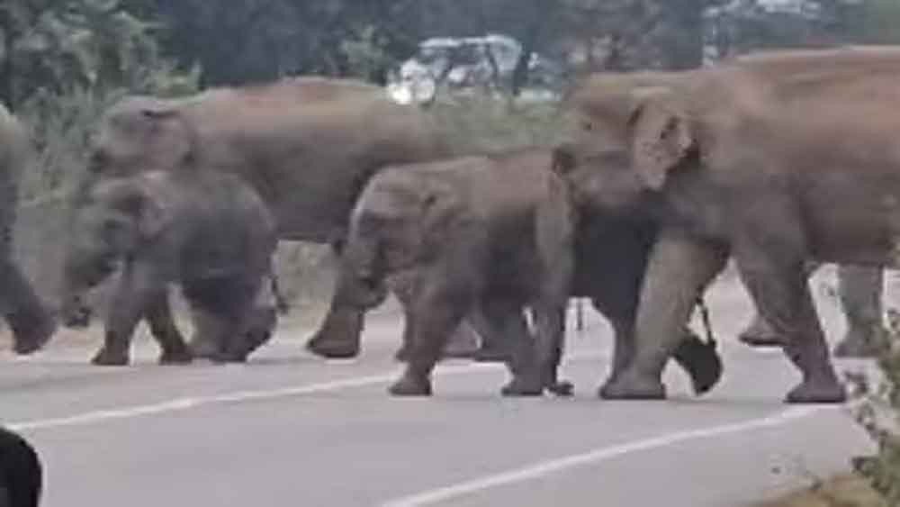 कोरबा जिले में कटघोरा से चोटिया नेशनल हाईवे के बीच ग्राम मड़ई के पास का दृश्य लोगों की सांस थाम कर रखने वाला रहा। बच्चों सहित दंतैल और हाथियों का दल इस पार से सड़क पार कर उस पार के जंगल को जाने निकला था। जानकारी होने पर दोनों तरफ से आवागमन रुकवाया गया। दोपहिया से लेकर चार पहिया और भारी वाहनों के पहिये थमे रहे।