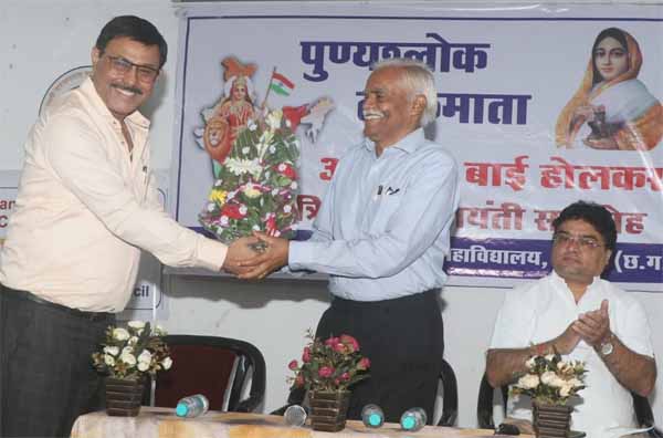आयोजन में सकल गुजराती समाज के अध्यक्ष कौशिक दत्ताकार करने भी विचार रखें उन्होंने बताया कि समाज किस तरह से निरंतर कार्य कर रहा है अहिल्याबाई होलकर की जीवनी पर प्रकाश डालते हुए उनका कहना था कि पूरी मानवता के लिए कार्य करने वाली महिला रही है देश फिर से सोने की चिडि?ा बनेगा यह सपना हम सभी भारतीय मिलकर पूर्ण करेंगे व्यक्ति को खुशी धन कमाने से नहीं मिल सकती किसी की समस्या को हल करने में खुशी मिल सकती है।आयोजन की शुरूआत में महाविद्यालय के प्राचार्य डॉक्टर देवाशीष मुखर्जी ने स्वागत उद्बोधन रखा और महारानी अहिल्याबाई होलकर के व्यक्तित्व पर प्रकाश डालते हुए देश में चुनिंदा महारानी रही है जिनके नेतृत्व को पूरा देश समर्पित होकर स्मरण करता है और जानता है इसमें से महारानी देवी अहिल्याबाई होलकर रही है मुगल शासन व्यवस्था पर प्रकाश डालते हुए डॉक्टर मुखर्जी ने कहा कि किस तरह से मुगल वंशियों ने देश की विरासत को मिटाने का प्रयास किया था कार्यक्रम में मंच संचालन डॉ. अर्चना मोढक के द्वारा किया गया आभार प्रदर्शन प्रोफेसर अपूर्वा शर्मा ने रखा। कार्यक्रम में सभी प्राध्यापक एवम बड़ी संख्या में छात्र छात्रओं ने अपनी उपस्थिति दर्ज कराई।