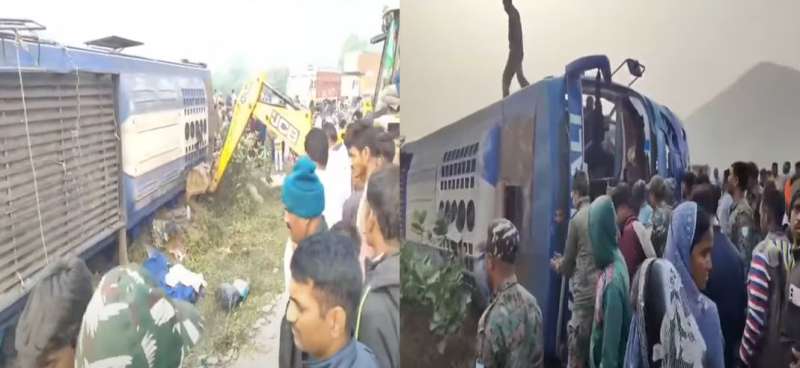 हजारीबाग जिले के बरकट्ठा प्रखंड के गोरहर में गुरुवार की सुबह छह बजे कोलकाता से पटना जा रही विशाल नामक यात्री बस अनियंत्रित होकर पलट गई। इसके बाद वहां कोहराम मच गया। इस भीषण हादसे में अब तक 6 लोगों की मौत की पुष्टि हुई है। वहीं दो दर्जन से अधिक लोगों के घायल होने की खबर है। बताया जा रहा है कि यहां सड़क वन वे है और सिक्स लेन सड़क निर्माण के दौरान कंपनी ने सड़क काट छोड़ दिया है। इस कारण बस अनियंत्रित हो गई और गड्ढे में पलट गई। चीख पुकार सुनकर आस-पास के ग्रामीण पहुंचे और गोरहर थाना की पुलिस की मदद से घायलों को बाहर निकाला गया है। मृतकों में सबसे अधिक संख्या महिलाओं की है। विशाल नामक यह बस पटना जा रही थी।