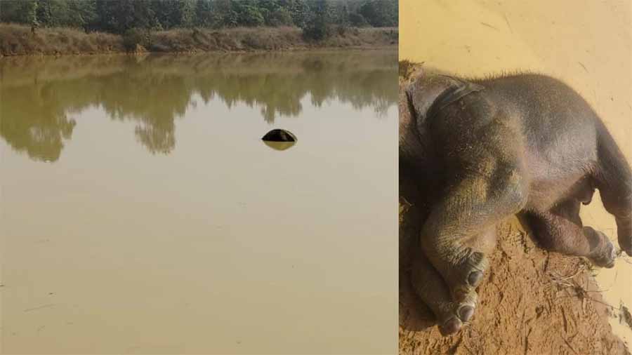 छाल परिक्षेत्र के 545 पीएफ़ में जंगल के अंदर वन्य जीवों के लिए बनाएं गए तालाब में हाथी के बच्चे की पानी में तैरती लाश मिली है।