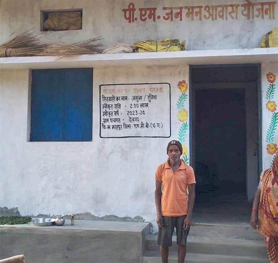 पीएम जनमन योजना अंतर्गत मनेन्द्रगढ़ चिरमिरी भरतपुर जिले ग्राम देवगढ़ के विशेष पिछड़ी जनजाति बैगा समुदाय के हितग्राही श्री जमुना बैगा के खुद के पक्के आशियाने का सपना साकार हुआ है। हितग्राही ने आवास पूर्ण होने पर अपनी प्रसन्नता व्यक्त करते हुए बताया कि प्रधानमंत्री जनमन योजना ने उनकी दशा और दिशा बदल दी है।