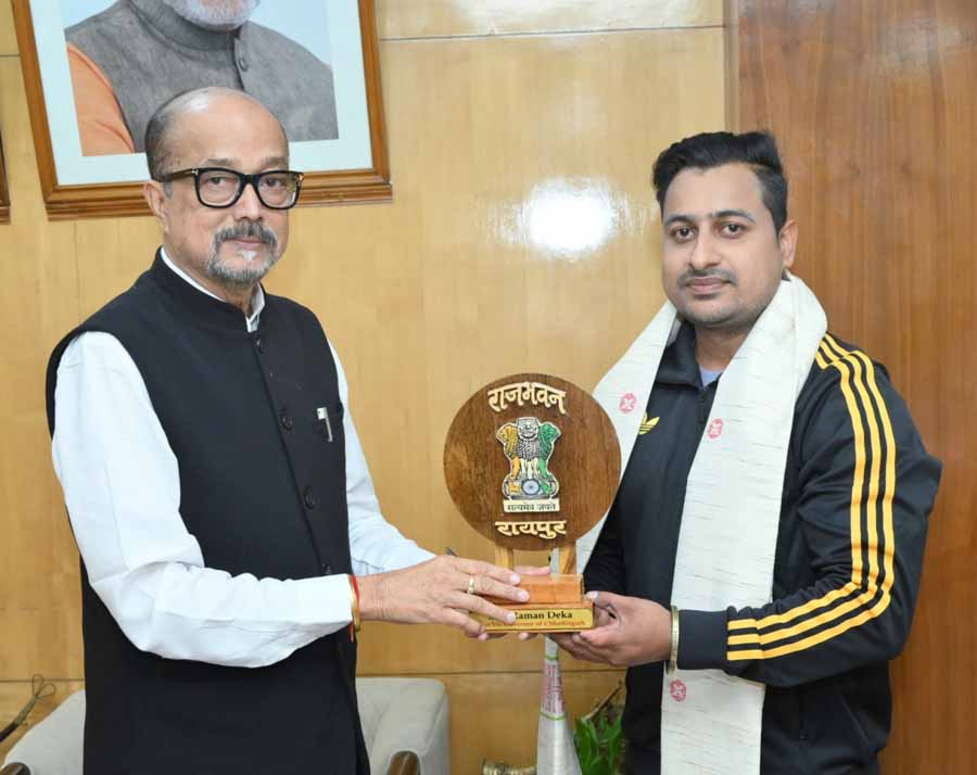 राज्यपाल रमेन डेका से आज राजभवन में पंजा कुश्ती में पैरा एशिया कप के गोल्ड मेडल विजेता श्रीमंत झा ने सौजन्य भेंट की। श्री झा ने गत नवम्बर माह में मुबंई में आयोजित प्रतियोगिता में यह उपलब्धि हासिल की।