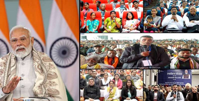 प्रधानमंत्री नरेंद्र मोदी ने 18 जनवरी को स्वामित्व योजना के तहत संपत्ति कार्ड वितरित किए। इस योजना के माध्यम से ग्रामीणों को अपनी जमीन का मालिकाना हक मिला है। पीएम मोदी ने वीडियो कॉन्फ्रेंसिंग के जरिए कार्यक्रम में हिस्सा लिया और लाभार्थियों से बातचीत भी की। यहां मध्य प्रदेश, छत्तीसगढ़, उत्तर प्रदेश, ओडिशा, राजस्थान, महाराष्ट्र और गुजरात राज्यों के मुख्यमंत्री और राज्यपाल भी कार्ड वितरण कार्यक्रम में शरीक हुए। इस अवसर पर प्रधानमंत्री मोदी ने इस योजना को ग्रामीण अर्थव्यवस्था और गांवों के लिए ऐतिहासिक बताया। उन्होंने बताया कि इस योजना के तहत करीब 5 सालों में डेढ़ करोड़ लोगों को स्वामित्व कार्ड मिल चुके हैं। इसके जरिए ग्रामीणों को कानूनी प्रमाणपत्र हासिल हो गए हैं। पीएम मोदी ने कहा कि आज के इस कार्यक्रम में 65 लाख से ज्यादा परिवारों को स्वामित्व कार्ड वितरित किए गए हैं।