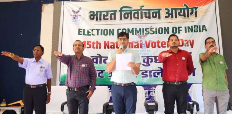 रायपुर : राष्ट्रीय मतदाता दिवस के अवसर पर युवा पीढ़ी को मतदान के महत्व और जिम्मेदारियों को समझाने के उद्देश्य से बीजापुर स्थित ऑडिटोरियम में भव्य कार्यक्रम का आयोजन किया गया। इस कार्यक्रम के तहत मतदाता जागरूकता अभियान का संचालन जिले के सभी मतदान केंद्रों और ब्लॉक मुख्यालयों में भी किया गया।