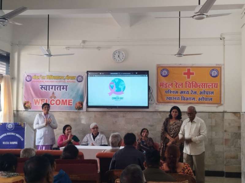 भोपाल, 4 फरवरी 2025 – विश्व कैंसर दिवस के अवसर पर भोपाल मंडल रेल चिकित्सालय में एक जागरूकता कार्यक्रम का आयोजन किया गया, जिसका उद्देश्य कैंसर की रोकथाम, शीघ्र पहचान और उपचार के प्रति जागरूकता बढ़ाना था। इस कार्यक्रम का आयोजन मुख्य चिकित्सा अधीक्षक डॉ. अजय डोगरा के मार्गदर्शन में किया गया।