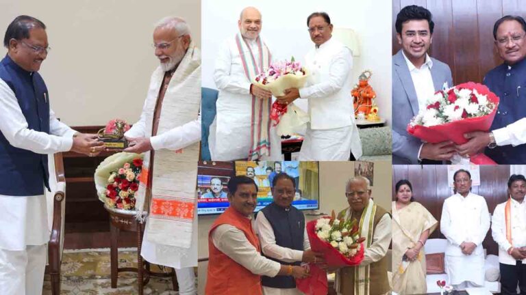 रायपुर: मुख्यमंत्री श्री विष्णु देव साय ने अपने दो दिवसीय नई दिल्ली प्रवास के दौरान प्रधानमंत्री श्री नरेंद्र मोदी, केंद्रीय गृह मंत्री श्री अमित शाह, केंद्रीय ऊर्जा, आवासन एवं शहरी कार्य मंत्री श्री मनोहर लाल खट्टर, केंद्रीय संचार एवं उत्तर-पूर्वी क्षेत्र विकास मंत्री श्री ज्योतिरादित्य सिंधिया, झारखंड के राज्यपाल श्री संतोष गंगवार, सांसद श्री तेजस्वी सूर्या सहित विभिन्न वरिष्ठ नेताओं से मुलाकात कर छत्तीसगढ़ के विकास, औद्योगिक नीति, नक्सल उन्मूलन और बस्तर के विकास पर विस्तृत चर्चा की।
