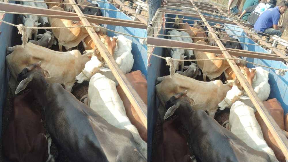 दुर्ग जिले के अहिवारा क्षेत्र में गौवंश से भरी एक ट्रक को पुलिस ने पकड़ा है. ट्रक में 32 गौवंश को ठूंस-ठूंस कर भरा गया था और उन्हें मुंगेली से नागपुर के कत्लखाने ले जाया जा रहा था.