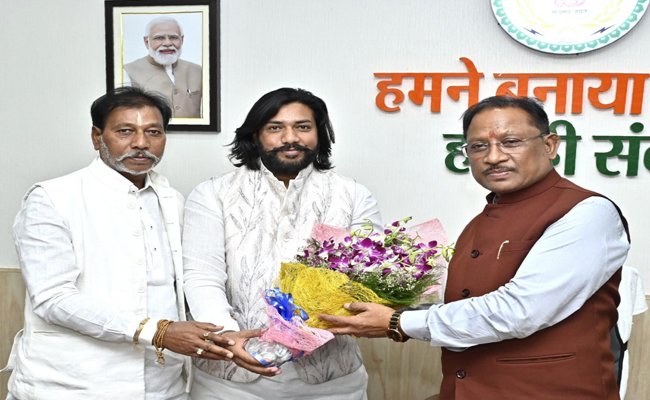 रायपुर। मुख्यमंत्री श्री विष्णु देव साय से आज उनके निवास कार्यालय में आरंग विधायक गुरु खुशवंत साहेब ने सौजन्य मुलाकात की। मुख्यमंत्री श्री साय ने गुरु खुशवंत को आज उनके जन्मदिन के अवसर पर हार्दिक बधाई और शुभकामनाएँ दी। उन्होंने गुरु खुशवंत साहेब के उज्ज्वल भविष्य की कामना की। इस अवसर पर गुरु बालदास साहेब भी उपस्थित रहे।