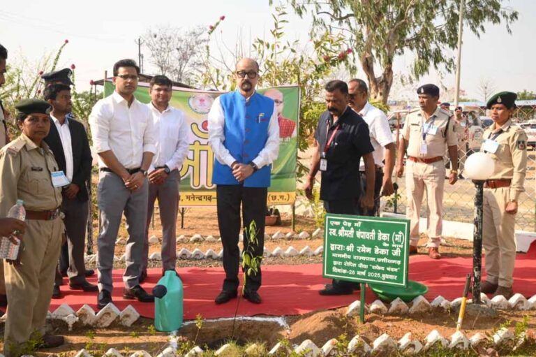 गत दिवस मनेंद्रगढ़ प्रवास के दौरान राज्यपाल रमेन डेका ने कलेक्ट्रेट सभाकक्ष में कलेक्टर डी राहुल वेंकट एवं जिले के अन्य अधिकारियों की बैठक ली। इस दौरान उन्होंने जिले में क्रियान्वित किए जा रहे शासन की योजनाओं, उनकी प्रगति और लाभान्वित हितग्राहियों के सम्बन्ध में एजेंडावार जानकारी ली। अपने प्रवास में कलेक्ट्रेट परिसर आगमन पश्चात सर्वप्रथम उन्हें गार्ड ऑफ ऑनर दिया गया। इसके पश्चात उन्होंने ’एक पेड़ मां के नाम अभियान’ के तहत कलेक्ट्रेट परिसर में सफेद चंदन के पौधे का रोपण किया। बैठक के पश्चात उन्होंने ग्राम तेंदुडांड का निरीक्षण किया और वहां प्रधानमंत्री आवास योजनांतर्गत निर्मित आवास का अवलोकन किया और हितग्राहियों से चर्चा की। साथ ही उन्होंने एन आर एल एम के समूह की महिलाओं के साथ चर्चा कर उनके द्वारा किए जा रहे कार्यों को जाना।