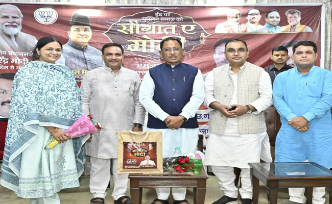 प्रधानमंत्री श्री नरेंद्र मोदी की पहल “सौगात-ए-मोदी” के तहत मुख्यमंत्री श्री साय ने गरीब महिलाओं को गिफ्ट पैकेट वितरित किए जिसमें लेडीज़ सूट का कपड़ा, सेवइयां, खजूर और मिठाइयां शामिल थीं। मुख्यमंत्री श्री साय ने सभी को ईद की बधाई देते हुए कहा कि ईद का पर्व प्रेम, सद्भाव और एकजुटता का प्रतीक है।