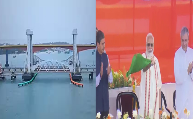 पंबन ब्रिज भारत का पहला वर्टिकल सी ब्रिज है। जो यात्रा को आसान और ट्रेन परिचालन को तेज करेगा। पीएम मोदी ने कहा बहुत समय से इस ब्रिज की मांग थी और आपके आशीर्वाद से यह संभव हुआ। यह ब्रिज न केवल तकनीक का प्रतीक है बल्कि रामेश्वरम से चेन्नई और देश के अन्य हिस्सों तक पर्यटन और व्यापार को बढ़ावा देगा। यह ईज ऑफ डूइंग बिजनेस में भी महत्वपूर्ण भूमिका निभाएगा। पीएम ने इसे तकनीक और परंपरा के मिलन का प्रतीक बताया।