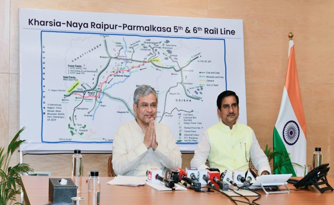 रायपुर। केंद्रीय कैबिनेट की ओर से मंजूर खरसिया-नया रायपुर-परमलकसा रेल प्रोजेक्ट के बारे में रेल, सूचना एवं प्रसारण, इलेक्ट्रॉनिकी एवं सूचना प्रौद्योगिकी मंत्री अश्विनी वैष्णव ने सोमवार को रेल भवन में आयोजित प्रेस कॉन्फ्रेंस में कहा कि यह प्रोजेक्ट छत्तीसगढ़ की रेल कनेक्टिविटी को बदलने वाला है । इस प्रोजेक्ट पर 8741 करोड़ रुपये की लागत आएगी और इससे पूरे छत्तीसगढ़ को एक छोर से दूसरे छोर तक कवरेज मिलेगा । रेल मंत्री ने कहा कि खरसिया-परमलकसा 5वीं-6वीं रेल लाइन छत्तीसगढ़ में रेल नेटवर्क की नई धमनी की तरह है। यह ओडिशा की सीमा से महाराष्ट्र की सीमा तक रेल नेटवर्क की सुविधा प्रदान करेगी।