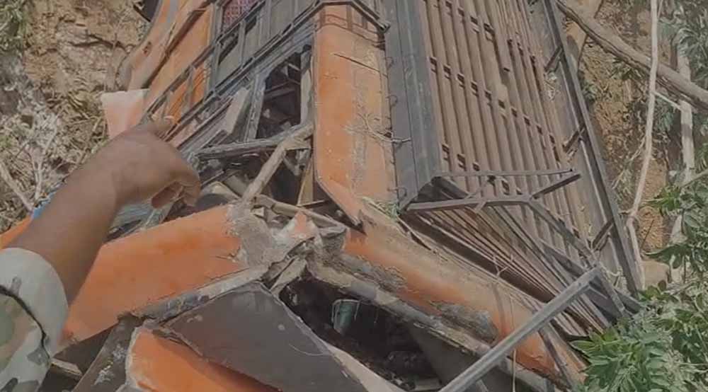 पहाड़ी पर घुमावदार सड़क के ऊपरी हिस्से से ही बस नीचे गिरी। इस दौरान कई पेड़ भी धराशायी होते चले गए। बस पूरी तरह से क्षतिग्रस्त हो चुकी है।
