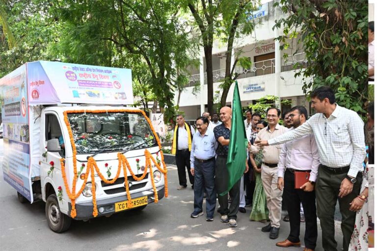कलेक्टर संजय अग्रवाल ने डेंगू रोग के प्रति समाज में जनजागरूकता फैलाने के लिए जिला कार्यालय परिसर से प्रचार रथ को हरी झंडी दिखाकर रवाना किया। यह वाहन हाट बाजारों, गांवों और विभिन्न वार्डों में पहुंचकर डेंगू के कारण, लक्षण और बचाव के उपाय की जानकारी देगा। राष्ट्रीय वेक्टर जनित रोग नियंत्रण कार्यक्रम के अंतर्गत राष्ट्रीय डेंगू दिवस पर इसका आयोजन किया गया है। सीएमएचओ डॉक्टर प्रमोद तिवारी ने बताया की एडीज नामक मच्छर के काटने से यह रोग होता है । यह मच्छर दिन के समय में लोगों को काटता है। डेंगू के लक्षणों में तेज बुखार व तेज सिर दर्द,मांसपेशियों तथा जोड़ों में दर्द,आंखों के पीछे दर्द होना, जी मिचलाना एवं उल्टी होना, नाक मुंह मसूड़े से खून आना तथा त्वचा पर चकते उभरना है। इस गंभीर बीमारी से बचाव के लिए कूलर, पानी की टंकी,पक्षियों के पीने के पानी का बर्तन, फ्रिज की ट्रे, फूलदान इत्यादि को प्रति सप्ताह खाली करें वह धूप में सुखाकर प्रयोग करें। नारियल का खोल,टूटे हुए बर्तन वह टायरों में पानी जमा न होने दें। घरों के दरवाजे व खिड़कियों में जाली परदे लगाया जाए तथा मच्छरदानी का उपयोग करें। इस अवसर पर नगर निगम आयुक्त अमित कुमार, जिला पंचायत सीईओ संदीप अग्रवाल तथा स्वास्थ्य विभाग के डॉक्टर एवं कर्मचारी उपस्थित थे।