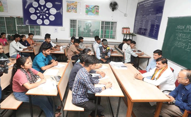 मुख्यमंत्री डॉ. यादव ने कृषि विकास और विस्तार की संभावनाओं से भी विद्यार्थियों को रू-ब-रू कराया। उन्होंने शासन की कृषि संबंधी मुख्य योजनाओं की जानकारी देते हुए कहा कि मध्यप्रदेश कृषि विकास में अग्रणी राज्य की भूमिका अदा करता है। मुख्यमंत्री डॉ. यादव ने संवाद के दौरान महाविद्यालयीन विद्यार्थियों से सवाल-जवाब भी किए। विद्यार्थियों द्वारा बड़े उत्साह के साथ मुख्यमंत्री डॉ. यादव द्वारा पूछे गए सवालों का जवाब भी दिया गया। विद्यार्थियों ने बताया कि महाविद्यालय की ओर से खेल गतिविधियों के तहत हमें पचमढ़ी और मनाली शिविर में ट्रैकिंग सहित अन्य गतिविधियां करवाई गई। विद्यार्थियों का उत्साहवर्धन करते हुए मुख्यमंत्री डॉ. यादव ने विद्यार्थियों के साथ ग्रुप फोटो भी खिंचवाया।