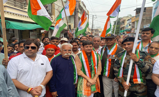 जगह-जगह यात्रा का मंच के माध्यम से स्वागत हुआ, विधानसभा 1 में निवासरत रिटायर सैनिकों का सम्मान भी इस दौरान किया गया। तिरंगा यात्रा में बड़ी संख्या में माताएं बहने भी शामिल थी।