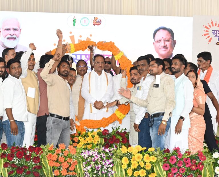 रायपुर: मुख्यमंत्री श्री विष्णु देव साय आज रायपुर जिले के ग्राम भैंसा में आयोजित सुशासन शिविर में शामिल हुए। इस अवसर पर उन्होंने देशभर में प्रधानमंत्री श्री नरेंद्र मोदी के नेतृत्व में 29 मई से 12 जून तक चलने वाले ‘विकसित कृषि संकल्प अभियान’ के तहत 10 जागरूकता रथों को हरी झंडी दिखाकर अभियान की शुरुआत की।