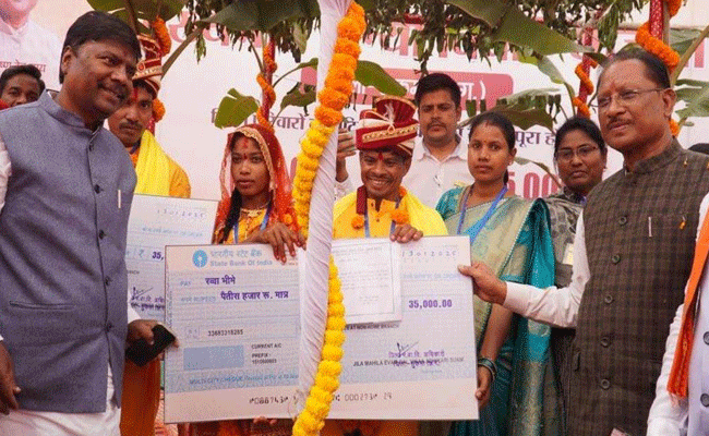 महिला एवं बाल विकास मंत्री श्रीमती लक्ष्मी राजवाड़े के मार्गदर्शन में मुख्यमंत्री कन्या विवाह योजना ने बस्तर के निर्धन परिवारों को नया जीवन दिया है। योजना के तहत प्रत्येक जोड़े को 50 हजार रुपये की सहायता दी जाती है, जिसमें 35 हजार रुपये सीधे वधु के खाते में हस्तांतरित होते हैं। श्री विष्णु देव साय सरकार के कार्यकाल में अब तक 15 हजार से अधिक जोड़ों का विवाह इस योजना के तहत संपन्न हो चुका है।