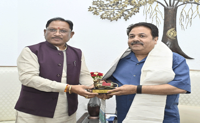 रायपुर। मुख्यमंत्री श्री विष्णु देव साय से आज मुख्यमंत्री निवास कार्यालय में छत्तीसगढ़ से राज्यसभा सांसद एवं भारतीय क्रिकेट कंट्रोल बोर्ड (बीसीसीआई) के उपाध्यक्ष श्री राजीव शुक्ला ने सौजन्य भेंट की। मुख्यमंत्री श्री साय ने श्री राजीव शुक्ला का कोसा वस्त्र एवं बेल मेटल से निर्मित स्मृति चिन्ह भेंटकर आत्मीय स्वागत किया। इस अवसर पर छत्तीसगढ़ में क्रिकेट सहित अन्य खेलों को बढ़ावा देने से संबंधित विभिन्न महत्वपूर्ण विषयों पर चर्चा हुई।