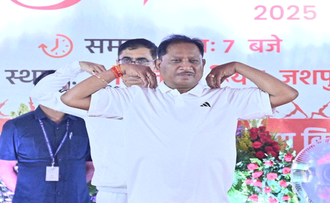 जशपुरनगर। मुख्यमंत्री श्री विष्णु देव साय ने आज जिला मुख्यालय जशपुर में हजारों लोगों के साथ योगाभ्यास किया। उन्होंने अंतरराष्ट्रीय योग दिवस की बधाई एवं शुभकामनाएं दी। मुख्यमंत्री ने कहा की योग हमारे देश के लिए कोई नई विधा नहीं है। सनातन काल से योग हमारे जीवन में चला आ रहा है। हमारे ऋषि मुनियों ने इसका इजाद किया है। प्रधानमंत्री श्री नरेंद्र मोदी ने विश्व पटल पर योग की महत्ता को स्थापित किया। संयुक्त राष्ट्र महासभा में वर्ष 2014 में आवाज उठाई और इसे विश्व स्तर पर स्वीकृति दिलाई। वर्ष 2015 से प्रति 21 जून को विश्व योग दिवस मनाया जा रहा है। हम सब लोगों के लिए बड़े सौभाग्य की बात है कि संयुक्त राष्ट्र महासभा सहित 175 देशों में योग की आवाज गूंज रही है। मुख्यमंत्री के साथ जनप्रतिनिधिगण, स्कूलों बच्चों, आम नागरिकों, अधिकारियों और कर्मचारियों ने उत्साह से योगाभ्यास किया। योग प्रशिक्षक के दौरा चक्र आसन, अर्ध चक्र आसन, कपाल भारती, अनुलोम-विलोम, प्राणायाम, वज्राशन सहित विभिन्न आसन से योगाभ्यास करवाया गया।