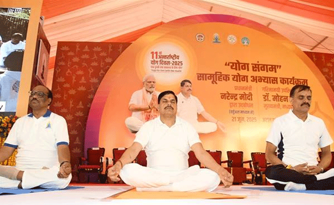 केंद्रीय राज्यमंत्री जनजातीय कार्य श्री दुर्गादास उइके ने कहा कि योग दिवस विभिन्न धर्मों और संस्कृति के बीच सामंजस्य का माध्यम बन चुका है। योग ने वसुधैव कुटुंबकम की भावना से दुनिया को एक परिवार के रूप में विकसित किया है। योग हमें भागदौड़ भरी जिंदगी में कुछ समय के लिए अपने अंदर झांकने का अवसर देता है। योग से चित्त यानी मन को निरोगी रखा जा सकता है। गीता में योगेश्वर श्रीकृष्ण ने कहा है कि मनुष्य के लिए कर्मों की कुशलता ही योग है। सांसद श्री वीडी शर्मा ने कहा कि प्रधानमंत्री श्री नरेन्द्र मोदी ने दुनिया को सुखी बनाने के लिए योग करने का संदेश दिया था। विश्व योग दिवस के 10 वर्ष पूर्ण हो चुके हैं। आज हम 11वां अंतरराष्ट्रीय योग दिवस मना रहे हैं। प्रधानमंत्री श्री मोदी ने योग के माध्यम से भारत की स्वास्थ्य के प्रति चेतना का विस्तार संपूर्ण विश्व में किया है।