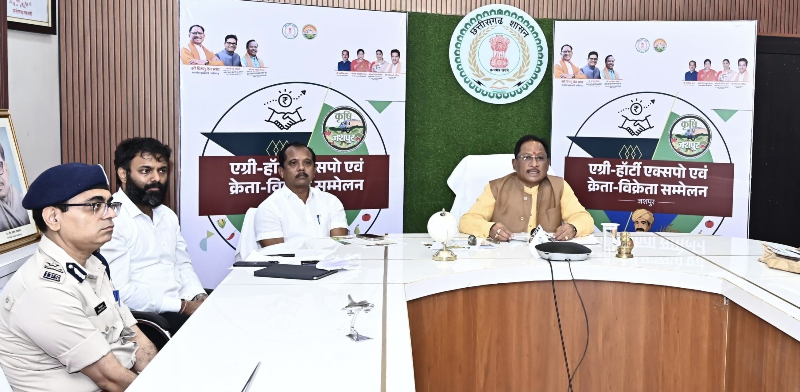 रायपुर 28 जून 2025/मुख्यमंत्री श्री विष्णुदेव साय ने आज जशपुर जिले में बगिया स्थित मुख्यमंत्री कैंप कार्यालय से कृषि क्रांति अभियान के अंतर्गत एग्री-हॉर्टी एक्सपो एवं क्रेता-विक्रेता सम्मेलन का वर्चुअल शुभारंभ किया। जिला पंचायत परिसर में दो दिनों तक चलने वाले इस आयोजन में देश की कई प्रमुख कृषि कंपनियां जैसे-जियो मार्ट रिटेल, देहात, हॉनेस्ट फॉर्म, आत्माकुर, धरागरी, अवनी आयुर्वेदा इत्यादि उपस्थित रहेंगी। इन कंपनियों के माध्यम से जिले के किसान एफपीओ के जरिए अपनी उपज का उचित मूल्य प्राप्त करने हेतु फसल विक्रय अनुबंध कर सकेंगे। बिचौलिया प्रथा समाप्त होने से किसानों को उनकी मेहनत का सही मूल्य प्राप्त होगा।