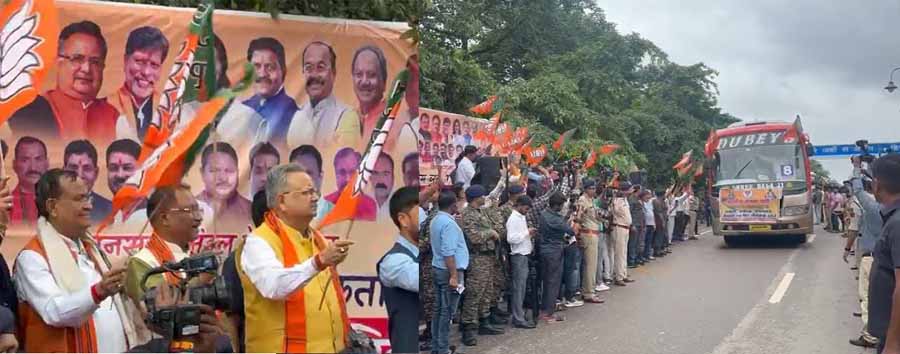 राजधानी के विधानसभा के करीब शीतलबाड़ी से मुख्यमंत्री विष्णुदेव साय, विधानसभा अध्यक्ष डॉ. रमन सिंह, पूर्व विधानसभा अध्यक्ष गौरीशंकर अग्रवाल, विधायक अनुज शर्मा, श्याम नारंग, अनिल अग्रवाल, आरंग विधायक गुरु खुशवंत समेत बीजेपी नेताओं ने बसों को हरी झंड़ी दिखाकर रवाना किया.