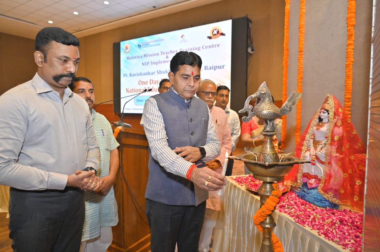रायपुर: उच्च शिक्षा मंत्री श्री टंक राम वर्मा ने नई शिक्षा नीति 2020 पर आजपं. रविशंकर शुक्ल विश्वविद्यालय, रायपुर में मालवीया मिशन टीचर ट्रेनिंग सेंटर एवं एनईपी इम्प्लीमेंटेशन सेल के संयुक्त तत्वावधान में राष्ट्रीय शिक्षा नीति-2020 पर एक दिवसीय कार्यशाला का आयोजन किया गया। विश्वविद्यालय सभागार में आयोजित इस कार्यशाला में उच्च शिक्षा मंत्री श्री टंक राम वर्मा ने कहा कि राष्ट्रीय शिक्षा नीति-2020 देश की शिक्षा व्यवस्था को नई दिशा और दृष्टि देने वाली है।