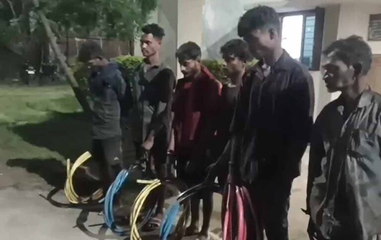 चोरों ने भागने निकलने की कोशिश में सरक्षा अधिकारी पर कुल्हाड़ी से हमला किया. हालांकि सुरक्षा अधिकारी बाल बाल बचे. इसके बाद सभी चोरों को पुलिस के हवाले कर दिया गया. आरोपियों के पास से हथियार और लाखों रुपए मूल्य का केबल तार बरामद किया गया.