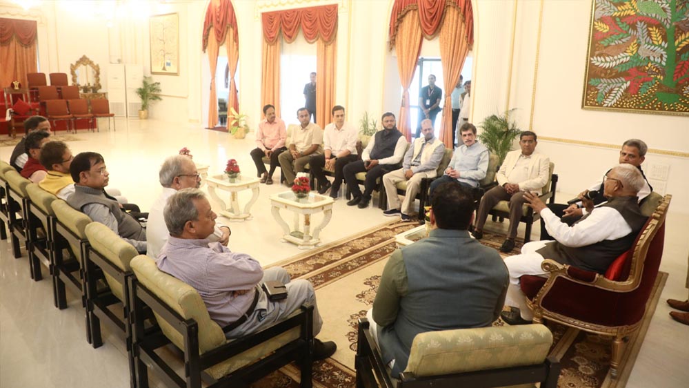 राज्यपाल मंगुभाई पटेल ने दल के साथ चर्चा करते हुए कहा कि प्रधानमंत्री नरेन्द्र मोदी के मंशा-अनुसार उन्होंने राजभवन को लोक कल्याण का केन्द्र बनाया है। प्रदेश के दूरस्थ पिछड़े और वंचित क्षेत्रों के साथ जीवंत संवाद कायम किया है। कार्यकाल के पहले दो वर्षों में ही प्रदेश के सभी जिलों का भ्रमण किया है। वंचितों के साथ आत्मीयता के सूत्र कायम किए है। वे प्रधानमंत्री आवास योजना के हितग्राहियों के घर पर परिजनों के साथ सह भोज करते है। प्रशासनिक व्यवस्थाओं को सजग करने की मंशा से पूर्व में पांच गांवों के भ्रमण का कार्यक्रम देते हैं। अंतिम क्षण में किसी एक गांव का भ्रमण कर सम्पर्क और संवाद के द्वारा व्यवस्थाओं की समीक्षा करते हैं।