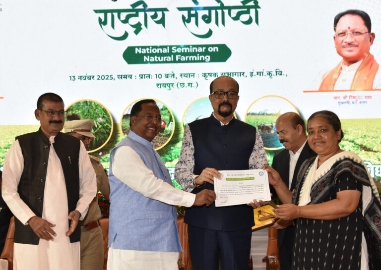 रायपुर: प्राकृतिक और जैविक खेती आज की सबसे बड़ी आवश्यकता है। रासायनिक उर्वरकों का उपयोग केवल उतना ही होना चाहिए जितना बिल्कुल जरूरी हो। किसानों में इस बात की जागरूकता लाना समय की मांग है। जल संरक्षण के लिएअभी प्रभावी कदम नहीं उठाए गए तो भविष्य में जल संकट और तेज़ी से बढ़ेगा। राज्यपाल श्री रमेन डेका ने आज प्राकृतिक खेती विषय पर आयोजित राष्ट्रीय संगोष्ठी के उद्घाटन कार्यक्रम में उक्त विचार व्यक्त किए।