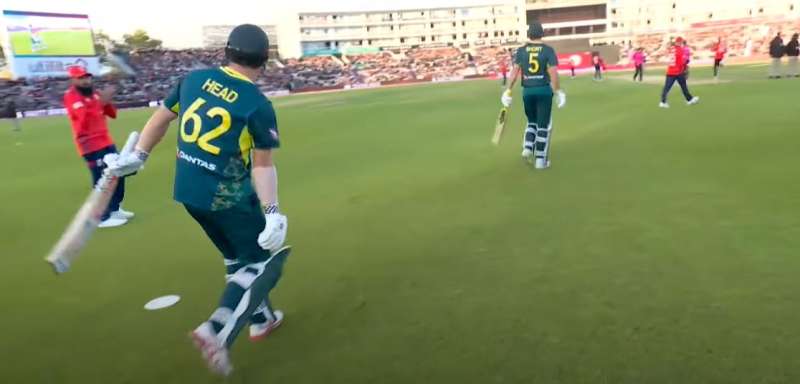टॉस जीतकर इंग्लैंड का पहले गेंदबाजी करने का फैसला गलत साबित हो रहा था क्योंकि ऑस्ट्रेलिया ने चार ओवर में 41 रन बना लिए थे। मैथ्यू शॉर्ट 12 गेंद में 25 रन बनाकर खेल रहे थे। दूसरे छोर पर खड़े ट्रेविस हेड का बल्ला अब तक शांत ही था क्योंकि उन्होंने 12 गेंद में सिर्फ 15 रन ही बनाए थे। शायद ये तूफान से पहले की शांत थी। कप्तान फिल साल्ट ने पांचवें ओवर में पहली बार सैम करन को गेंद थमाई। शॉर्ट एंड स्लो फेंकी गई पहली बॉल मिड ऑन की ओर पुल करते हुए हेड ने चौका बटोरा। ओवर की अच्छी शुरुआत के बाद हेड ने अगली गेंद पर भी चौका मारा क्योंकि गेंद बेहद खराब थी। अब हेड को अपनी शुरुआत मिल चुकी थी। तीसरी गेंद पर हेड ने डीप स्क्वैयर लेग पर एक विशाल छक्का मारते हुए ऑस्ट्रेलिया का स्कोर 50 रन पहुंचाया। चौथी और पांचवीं गेंद पर भी परिणाम नहीं बदला क्योंकि हेड ने लगातार तीसरा छक्का मार दिया। आखिरी गेंद सैम करन ने फुल फेंकी, जिस पर हेड ने चौका जड़ते हुए ओवर से कुल 30 रन निकाल लिए।