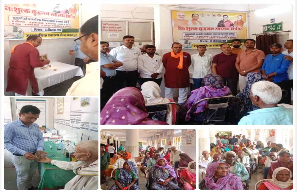 भरतपुर विकासखण्ड के स्वास्थ्य संस्थाओं मे सोमवार को राष्ट्रीय सेवा पखवाड़ा अंतर्गत वृद्धजन हेतु निःशुल्क जाँच शिविर का आयोजन किया गया। जिसका शुभारम्भ नगर पंचायत अध्यक्ष अशोक सिंह मुख्य अतिथि तथा श्री पवन शुक्ला, मंडल अध्यक्ष भरतपुर के द्वारा दीप प्रज्जवलित कर किया गया। उक्त शिविर में लगभग 109 वृद्ध महिला तथा 172 वृद्ध पुरुष उपस्थित होकर स्वास्थ्य लाभ लिया।