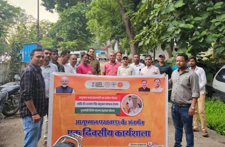 20 से 30 सितम्बर तक चलाए जा रहे आयुष्मान पखवाड़े के तहत विभिन्न गतिविधियों के माध्यम से हितग्राहियों का आयुष्मान कार्ड पंजीयन कराया जा रहा है। इसी क्रम में स्कूली छात्रों का आयुष्मान कार्ड बनाने के लिए निगम शिक्षकों को आयुष्मान योजना के नोडल अधिकारी डॉ. अनिल श्रीवास्तव द्वारा जानकारी दी गई और आयुष्मान कार्ड बनाने के लिए प्रशिक्षित किया गया। संजीवनी अस्पताल के सभागार में आयोजित कार्यशाला में आयुष्मान भारत योजना की जिला स्तरीय टीम द्वारा विभिन्न सत्र के माध्यम से कार्ड बनाने की प्रक्रिया की जानकारी दी गई। पखवाड़े के तहत रैली का आयोजन कर योजना के संबंध में लोगों को जागरूक किया गया।